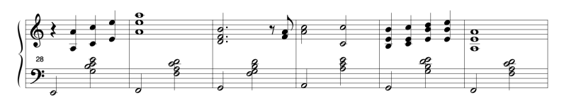 The piece is recorded in two layers. First the f-clef part, I think played with two hands, and then the g-clef part in a second track, also played with two hands. You can hear it in the original in the measures above.
